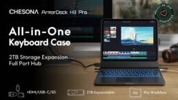The Chesona H3 Pro iPad Keyboard Case is a revolutionary accessory designed to maximize the productivity potential of your iPad. Featuring a robust ArmorDock 3.0 design, this case offers multiple connectivity options, including HDMI, USB-C, USB-A, and a 3.5mm audio jack, making it the ultimate all-in-one hub for your mobile or desktop workflow. With a built-in SSD slot supporting up to 2TB NVMe storage, users can expand their iPad’s capacity without the hassle of external drives. The silky smooth keyboard is engineered for comfort and efficiency, featuring customizable backlighting and a high-precision trackpad that supports Apple-style gestures. This case seamlessly combines rugged protection with versatile functionality, allowing users to transition easily between typing and tablet use, ensuring your iPad remains safe and fully equipped for any task, whether at home or on the go.