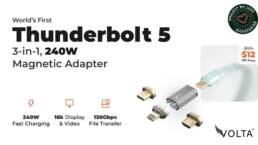 The Volta Thunderbolt 5 Adapter is a revolutionary 3-in-1 magnetic adapter that transforms any charging cable into a powerful, versatile charging solution. With its ability to support 120Gbps data transfer, 16K display output, and 240W USB-C Power Delivery, this compact adapter is compatible with all Apple Lightning, USB-C, and Micro USB devices. Designed for convenience, the Volta adapter allows users to swap tips effortlessly, converting existing cables into fast universal chargers. Since its inception in 2017, Volta has been at the forefront of innovative charging solutions, and this latest offering marks a significant leap in magnetic charging technology. With features such as snag-proof connectivity, eco-friendly materials, and a commitment to reducing e-waste, the Volta Thunderbolt 5 Adapter is set to redefine how we think about charging and data transfer.